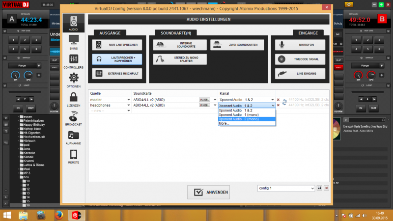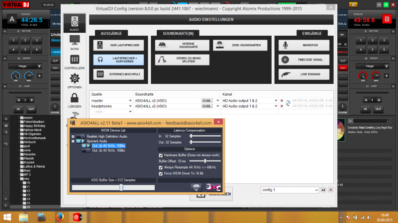 kannst du die Audio Treiber des XPONENT Controllers auswählen, anstatt der Asio4all ?