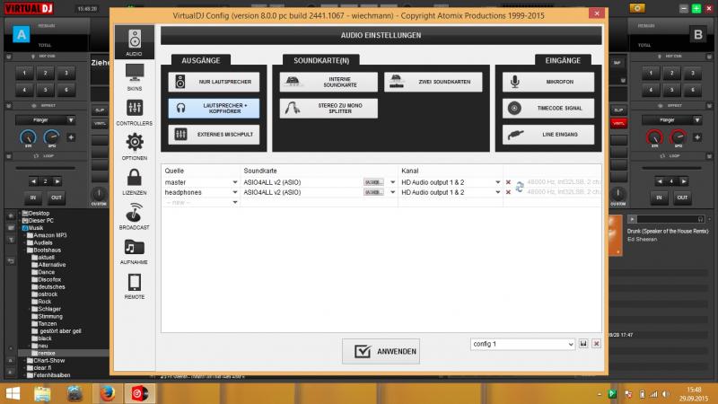 Das stellst du alles in der Audio config ein ....