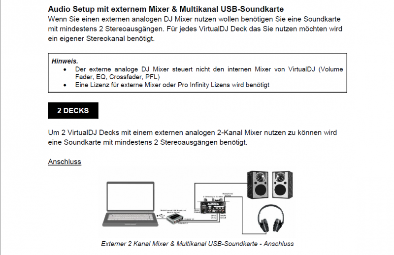Also ich meine, wenn du eine "normale" USB-Soundkarte an den PC anschließt und als Standardgerät verwendest, dann sollte es doch in VDJ auch möglich sein, diese Standardkarte aus Ausgabegerät zu verwenden.