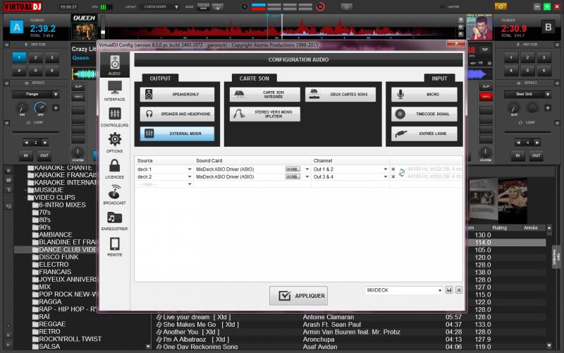 il n'y a pas de section mixdeck qui s'est affiché dans l'onglet ' carte son'