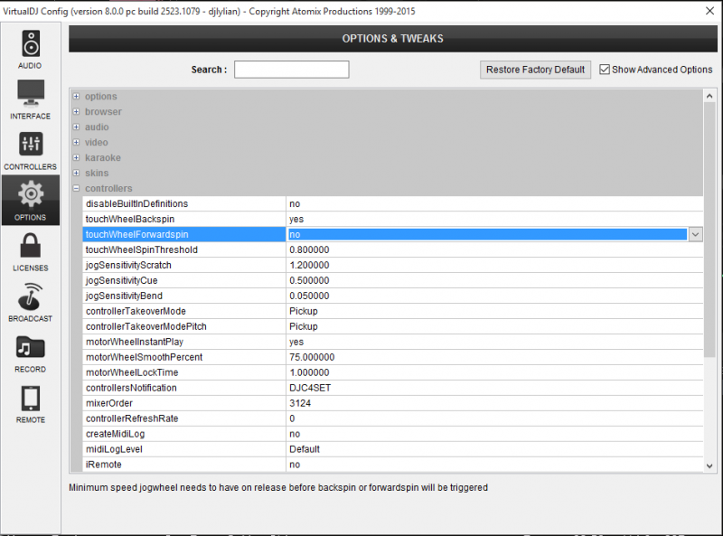 Pouvez vous vérifié dans config->Option->Contrôleur->TouchWellFowardSpin et bien sur "No"