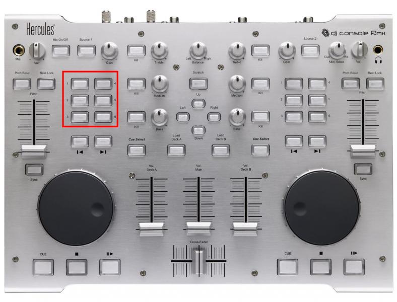 Die 6 Felder (wo Loop in, Loop out, etc. steht) konnte ich über den Controller mit diesen 6 Tasten steuern: