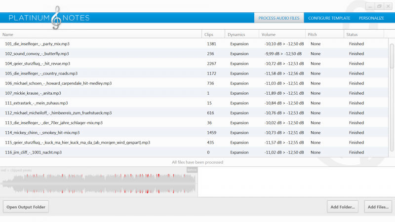 Alle Songs haben nach Bearbeitung von PN4 den Wert um die 12,50 db.