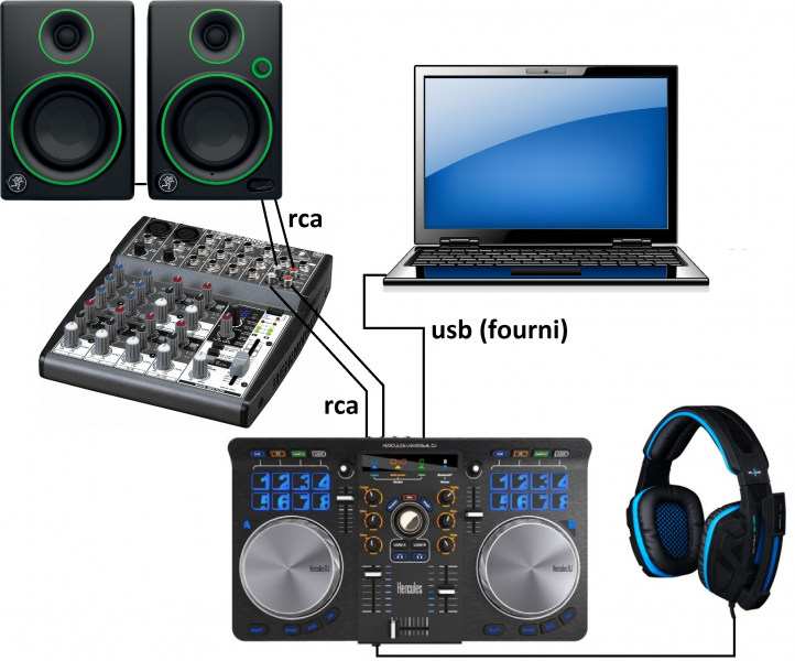 Bonjour bonjour tout le monde! Voilà j'ai envie de me lancer, de réaliser mon désir de gosse et commencer à mixer! Cela fait bien 1 mois ou 2 que je regarde énormément de tuto et de forums sur internet, et maintenant je veux acheter le matériel! Mon budget est d'environ 400€, étant donné que j'ai déjà choisi mes enceintes (Mackie CR3 - 125€), mon contrôleur (Hercules Universal DJ - 165€)! Il me reste donc 140 pour acheter un mixer et un casque. Cependant je ne sais absolument pas quoi prendre pour un bon rapport qualité/prix et je ne trouve aucun tuto pour comment brancher le mixer et le contrôleur en même temps au pc... Merci d'avance pour vos conseils et arrêtez moi si je fais une erreur! :) Bonne journée!