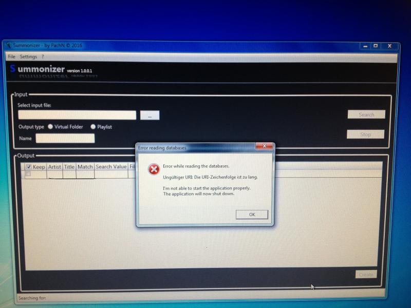 sitze gerade leider am falschen Rechner und kann nix testen, erst heute Abend. Wenn VDJ geöffnet ist kommt eine andere Fehlermeldung, das die Datenbank (Datei) schon benutzt wird, aber das ist ja auch klar. In der Datei die der Summonizer anlegt, ist da der Pfad zur database hinterlegt? Hatte ich schon mal von c: auf f: geändert, weil meine MP3 s auf F: liegen, ging aber trotzdem nicht.
