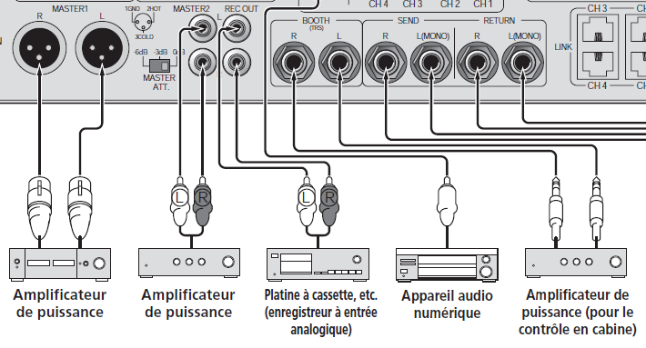 Pour brancher quatre enceintes monitoring sur ma DJM-2000