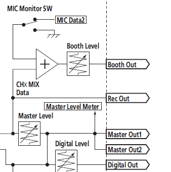 Si on regarde bien ce qui est écrit ci dessus, la sortie master 1 sort un niveau de +8dbu pour un niveau de sortie à 0db alors que la sortie master 2 sort seulement +2dbu pour 0db.