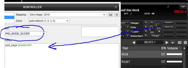 Ich habe auf dem beigefügten Bild mal mit dem blauen Pfeil gekennzeichnet was im Mapping da ausgeführt werden soll wenn ich die Action - wechsel PhantomFx auf Automix Live - tätigen möchte .