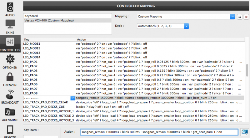 Übrigens: Du kannst nichts kaputt machen, da Du jederzeit zum factory default mapping zurück kannst. VDJ legt bei Änderungen automatisch ein sog. Custom-Mapping an