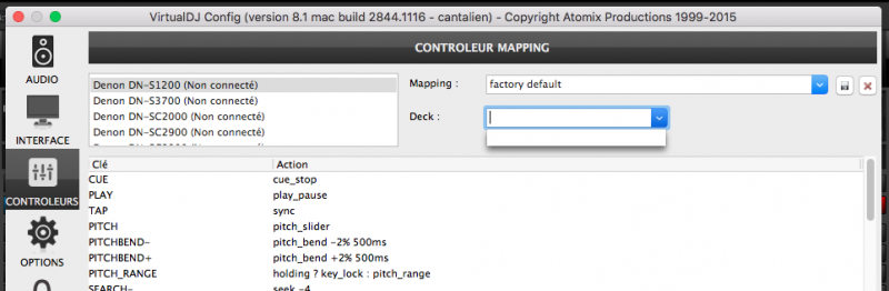 Dans le mapper si éventuellement les deux platines sont inversées par rapport à l'image des decks du soft, on peut intervertir la platine 1 et la 2 pour que ça corresponde bien.
