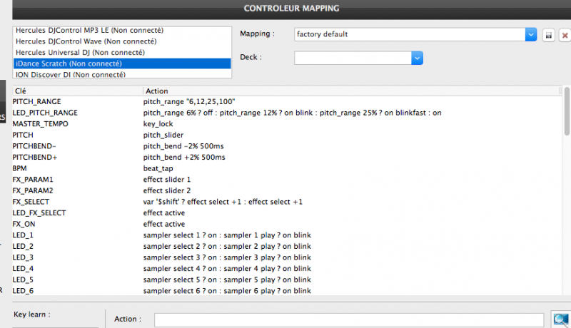 Bonjour, Je viens d'avoir un contrôleur idance vdj. Je branche sur mon ordinateur. L'ordinateur détecte bien le contrôleur. Mais j'arrive pas à contrôle virtual DJ. Il n'y a pas de cd. La personne me parle de mapping mais j'arrive pas à trouver. J'ai essayé le mapping du contrôleur audio phonie qui est exactement comme le mien bien sur de marque différente. Ça ne fonctionne toujours pas. Pouvais vous m'aider svp?