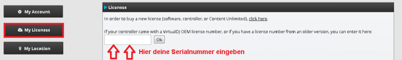 Registriere diese unter My Licenses durch Eingabe der Serialnummer.