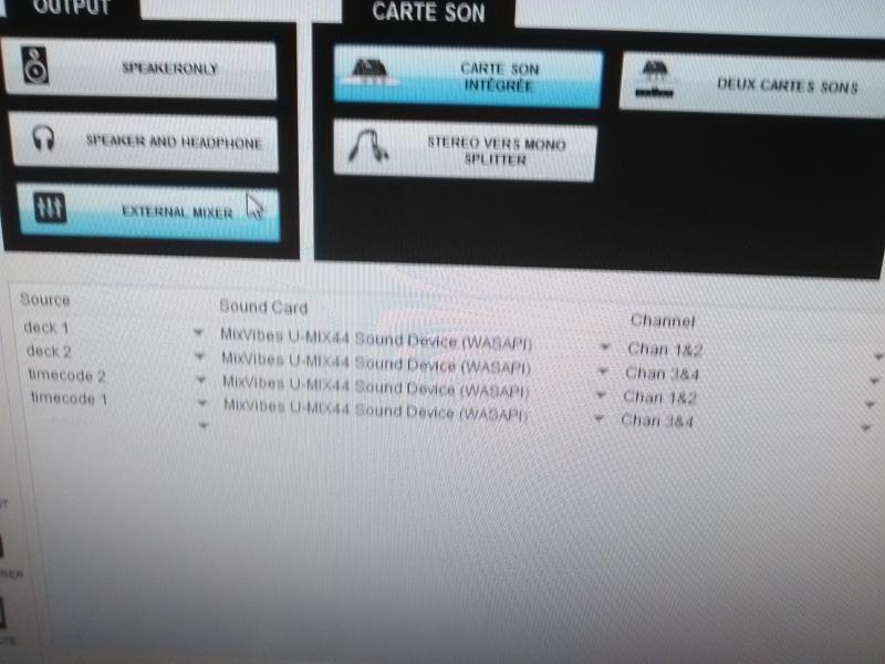 Voila mon soucis j ai une carte son u-mix 44 et virtual dj8 infinity installer sur mon pc .j aurais voulu la brancher avec 2platines vinyle + vinyle timecode traktor mk2 + table de mixage.