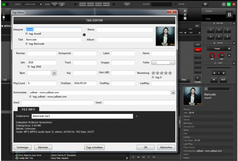 Dashier ist das komische: Interpret steht im Explorer drin aber in VDJ nicht: