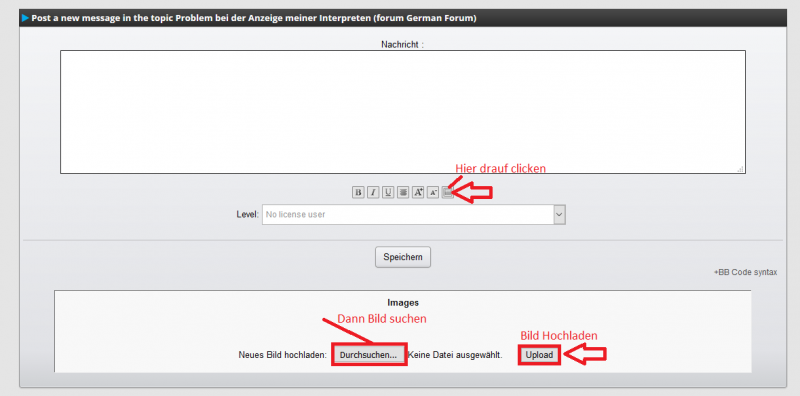 Hiermit kannst Bilder Hochladen und im Posting zeigen. Geht aber nicht bei allen Usern, je nach Lizenz.