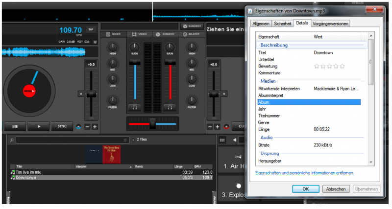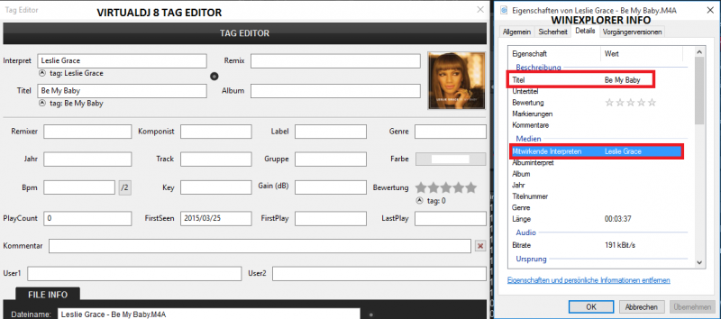 Also Windows Media Player erkennt alles richtig... Nur wenn ich in VDJ die Tags manuell überall rein schreibe dann dauert das 1. sehr lange für alle Songs und 2. sind die Felder dann im Explorer leer und ich kann auch nichts mehr rein schreiben. Somit erkennt Windows Media Player die Songs nicht...