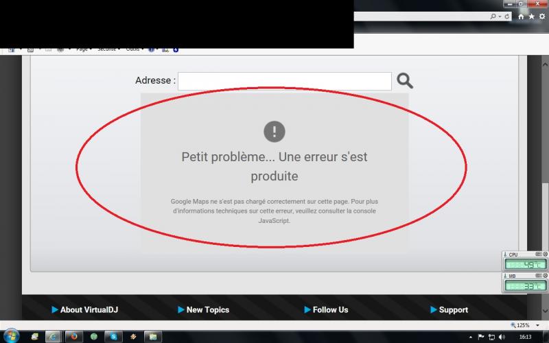 J'ai ce message qui apparait à la place de la carte maps.