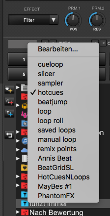 wenn ich auf Hotcues klicke geht das Auswahl-Menue auf