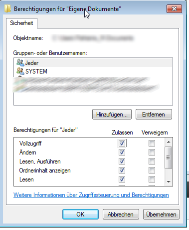 Am besten auch noch gleich den Benutzer "Jeder" mit aufnehmen.