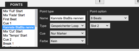 Damit ich bei der Trackvorbereitung nun nicht jedes Mal in den POI-Editor muss, um den Typ dieses Cue-Punktes von "Hot Cue" auf "Gespeicherter Loop" und der gewünschten Länge händisch zu ändern, möchte ich das per Mapping lösen.