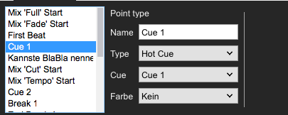 4: Namen für den Cue-Punkt vergeben (z.B. XYZ)