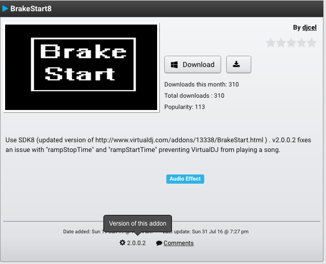 Also wenn bei dem Effekt noch 2.0.0.0 steht, dann kann der Entwickler auch einfach nur vergessen haben die Zahl hoch zu zählen. Das muss man nämlich händisch eingeben. Passiert mir auch öfters.