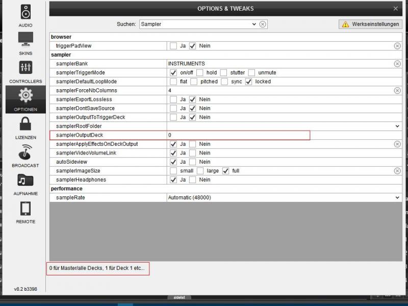 Mal ausprobieren, mach die Option zu und klick Deck 1 an. Schreib den selben Eintrag für die anderen Decks hinein. Vielleicht geht es. Bin gerade nicht am Rechner. Für mich wäre das aber so kein arbeiten, da die Sämpler lauter sind als die Titel. Also muß ich wieder dort nachregeln.
