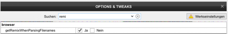 Falls relevant: In allen meinen MP3-Tags sind Musiktitel + Remix-Version nur in einer Rubrik unter dem Namen "Titel" zusammengefasst.