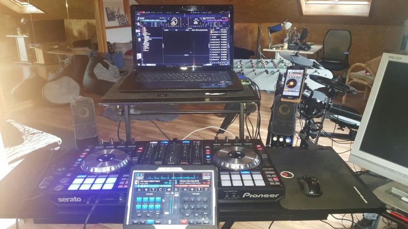 Coole Sache mit VDJremote über Wlan ....vorne das Tablet zum steuern CUEPoints und rechts oben das Smartphone für die Rythmusbeats und mit der DDJ-SX wird der Rest gemacht....so muss man die Pads-tasten nicht immer umschalten. ... und weitere Smartphones bzw Tablets können per WLAN zugeschaltet werden.