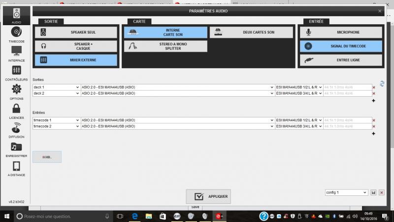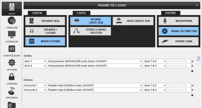 Si je met les 2 sur ASIO 2.0 - ESI MAYA44USB (ASIO) en sélectionnant ESI MAYA44USB 1/2L : L&R pour l'un et 3/4 : L1R pour l'autre, cela fait bugger VDJ.