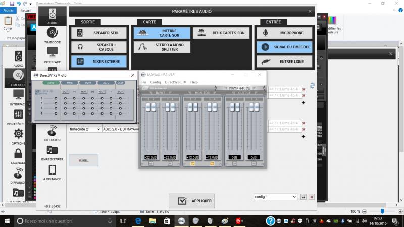 Timecode 1 / Maya44USB Ch12 (MAYA44USB Audio Driver) (WASAPI) je peux sélectionner le Chan 1 & 2