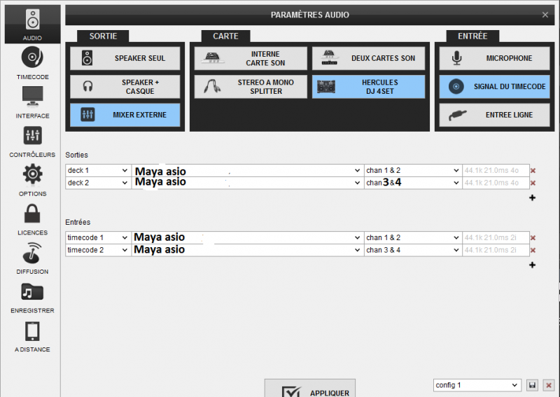Sur mon VDJ, à paramètres audio, carte, je ne vois pas la Maya.