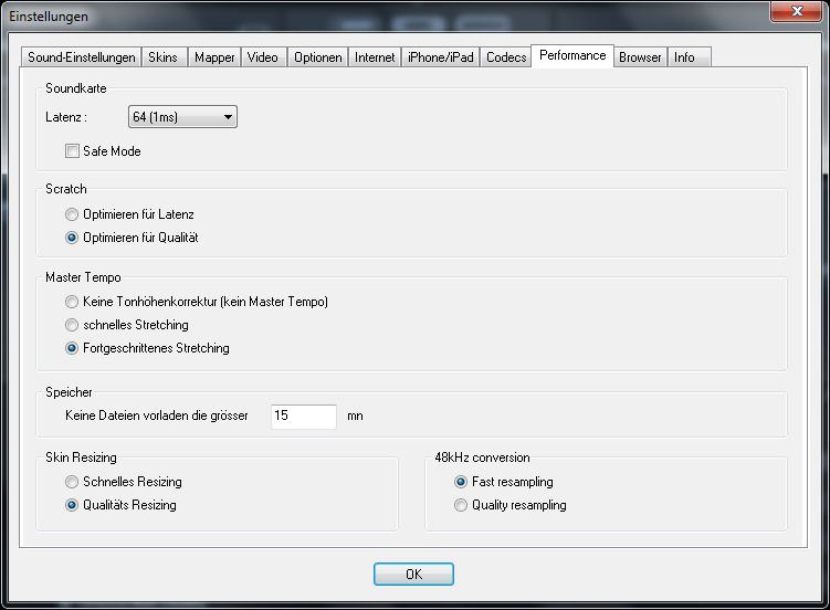 Wie sind Eure Einstellungen in VDJ (z.B. unter "Performance") ??