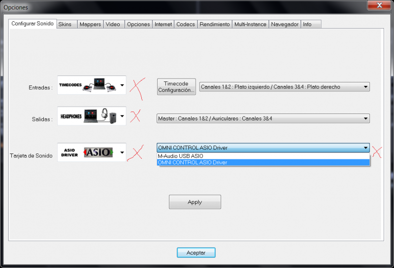 Muy buenas tardes, noches o dias, segun sea el caso... pues aqui dando lata, intentando explotar al máximo mi Virtual DJ Pro, me he topado con una incognita que se que alguno de ustedes puede ayudarme a aclarar... Estoy intentando por medio de dos interfaces de audio (tarjetas USB, una behringer UCA 200 y una Numark Stereo IO), configurarlas en el virtual para usarlas con time codes, pero el drive ASIO me dice que no tiene suficientes canales y no puedo activar las dos juntas...