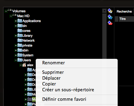 Ok merci pour ta réponse j'ai trouvé le dossier music dans user j'y ai collé mes dossiers par genre musical j'ai mis le dossier "music"en favoris mais pas les sous dossiers que j'ai collé. mais quand je lance une recherche d'un titre qui est dans un de mes dossiers la recherche ne trouve rien est ce que je doit mettre tous mes dossiers en favoris ou je dois les ajouter à la base de donnée? en te remrciant