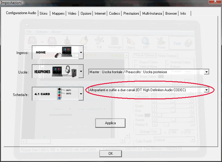 Setta VDJ cosi e dove ti ho evidenziato in rosso seleziona la tua scheda audio
