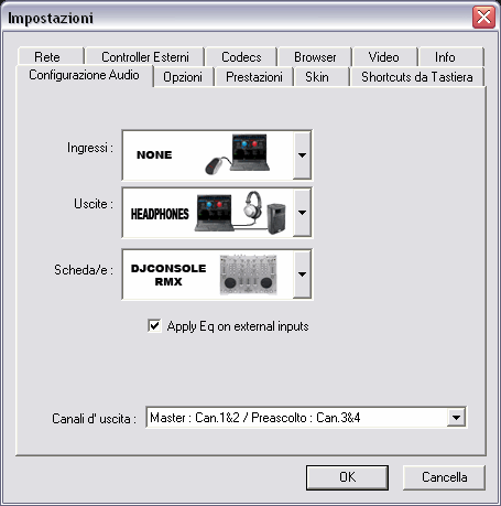 pour la carte son tu vas dans la config de vdj --> configuration audio et tu sélectionne dj console RMX