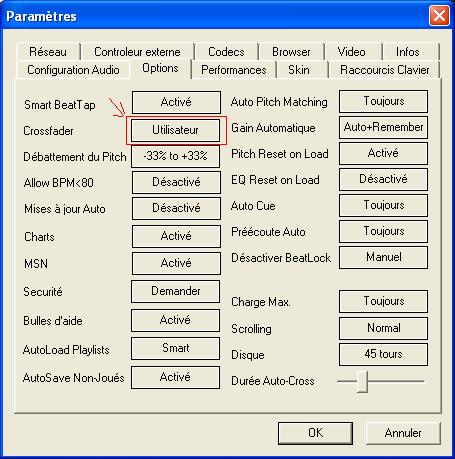 Pendant que vdj jouerai un son j’ai été dans l'option crossfader j’avais sélection "complet" au paravent sa va faire la deuxième fois que je vois marquer "utilisateur" à la place de "complet"