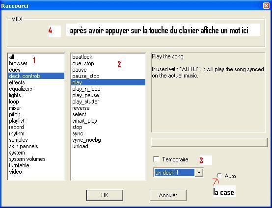 sélectionne : ajouter -> deck control ->Play ->et appuyer sur une touche de votre clavier