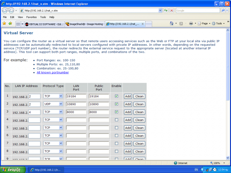 To pio basiko einai na einai anoikto to port 8000. Auto simainei oti prepei na mpeis sto setup tou router sou (px.192.168.2.1) kai na "apeleutherwseis" (routing) to TCP port 8000 gia to local ip adress tou ypologisti pou ekpempeis (px 192.168.2.2). An to katafereis auto ta allla einai apla mia rythmisi sto config tou Broadcast tou VirtualDJ opws fainetai stin eikona apo to site pou se parepempsa.